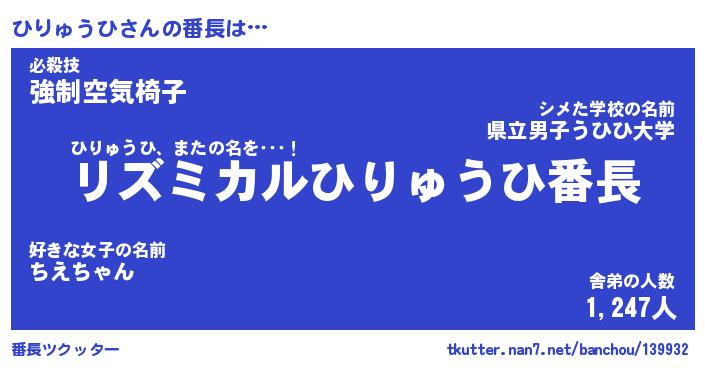 | 肩書あだ名 | 『ひりゅうひ店長』『ひりゅうひ大統領』 |