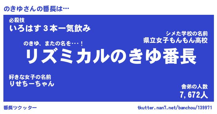 | 意味不明あだ名 | 『ペロリンのきゆ』『のきゆフォーエバー』 |