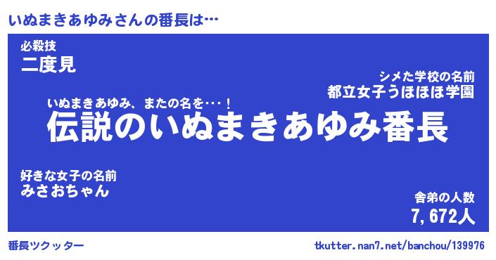 | 伝説のあだ名 | 『伝説のスナイパーいぬまきあゆみ』 |