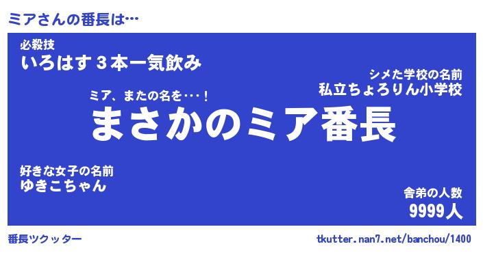 | ヘコむあだ名 | 『ミアもー』『なまこ酢』『ミアっ子』 |