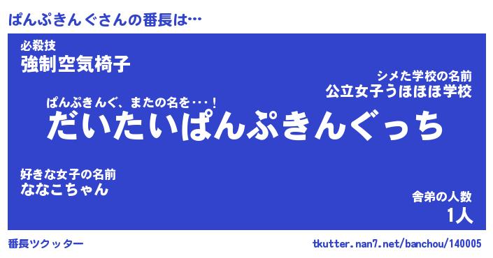 | 肩書あだ名 | 『ぱんぷきんぐ社長』『ぱんぷきんぐ担任』 |