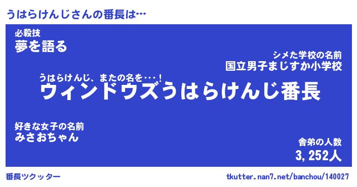 | 男性向けラノベタイトル風あだ名 | 『うはらけんじの憂鬱』 |