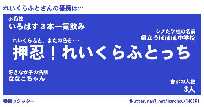 | ヘコむあだ名 | 『れいもー』『つくし』『れいお』 |