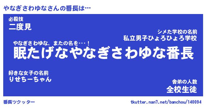 | 伝説のあだ名 | 『封印されしスナイパーやなぎさわゆな』 |