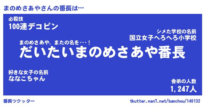 | ピコ太郎風あだ名 | 『マコ次郎』『ピマ八郎』『マノ太郎』 |