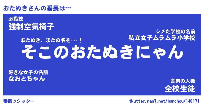 | 意味不明あだ名 | 『ペロリンおたぬき』『永久保存おたぬき』 |