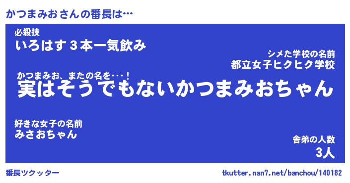 | 恥ずかしいあだ名 | 『プリティーかつまみお』『かつっちょ』 |