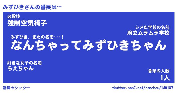 | 肩書あだ名 | 『みずひき御曹司』『みずひき国家主席』 |