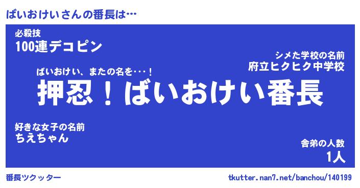 | 伝説のあだ名 | 『封印されしスナイパーばいおけい』 |