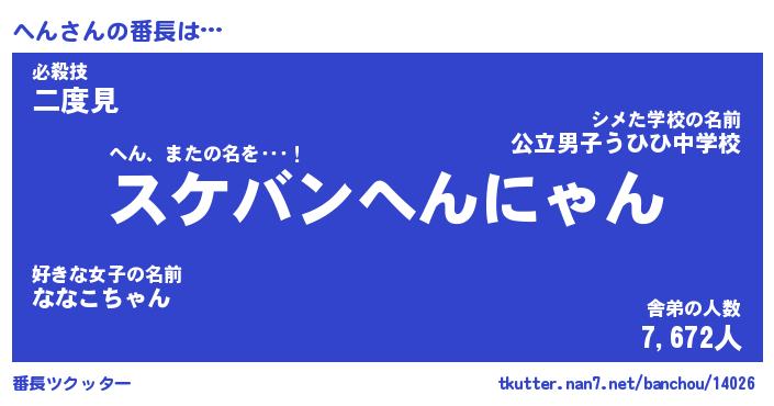 | ポケモン風あだ名 | 『ヘンチュウ』『ヘンダネ』『ヒヘン』 |