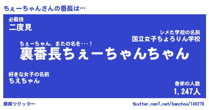 | 2回繰り返すあだ名 | 『ちぇちぇ』『ちちぇぇ』『ねちねち』 |