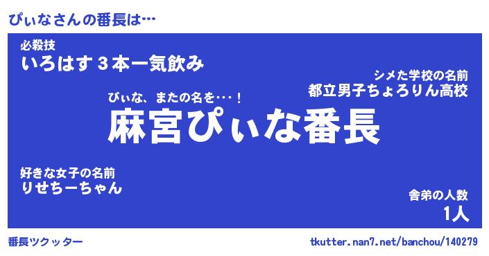 | 肩書あだ名 | 『ぴぃな御曹司』『ぴぃな国家主席』 |