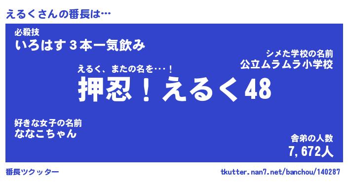 | 2回繰り返すあだ名 | 『えるえる』『ええるる』『げこげこ』 |