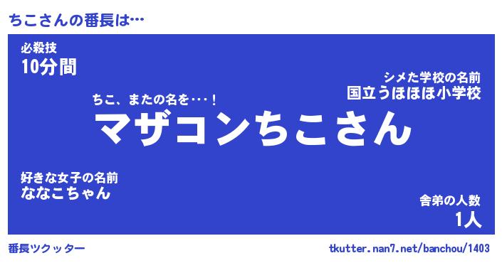 | ヘコむあだ名 | 『ちこにー』『なまこ酢』『ちこっぺ』 |