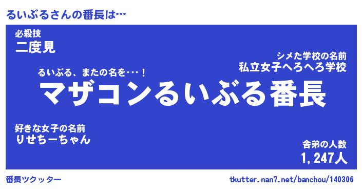 | 意味不明あだ名 | 『ペロリンるいぶる』『永久保存るいぶる』 |