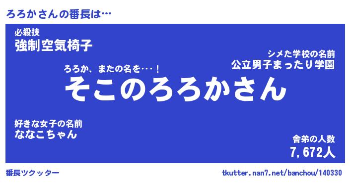 | 2回繰り返すあだ名 | 『ろろろろ』『ろろろろ』『ぬれぬれ』 |