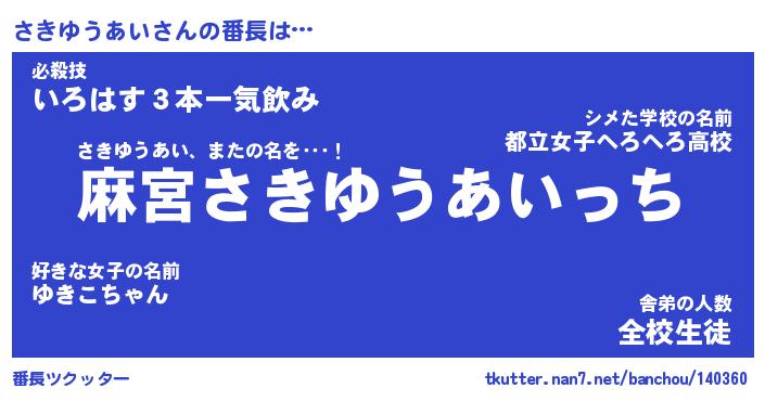 | 男性向けラノベタイトル風あだ名 | 『サキユウアイアートオンライン』 |