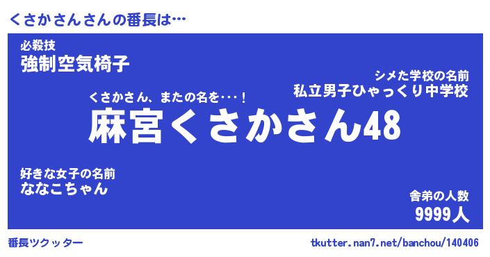 | ファンタジー風あだ名 | 『クサフェル』『エターナルクサカサンー』 |
