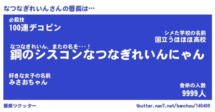 | 2回繰り返すあだ名 | 『なつなつ』『ななつつ』『あんあん』 |