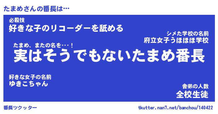 | ファンタジー風あだ名 | 『タマフェル』『エターナルタマメー』 |