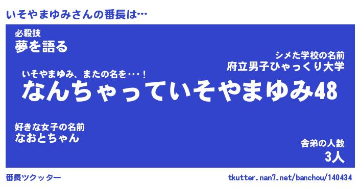 | ヒーロー風カッコイイあだ名 | 『スーパーイソヤマユミ』『魔戒騎士イソ』 |