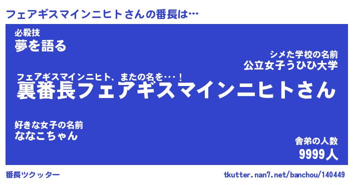 | ファンタジー風あだ名 | 『フェフェル』『ファントムフェス』 |