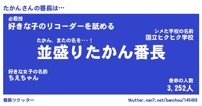 | 意味不明あだ名 | 『ペロリンたかん』『たかんフォーエバー』 |