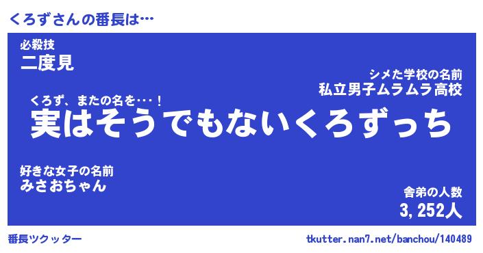 | ヒーロー風カッコイイあだ名 | 『スーパークロズ』『ウルトラくろずマン』 |