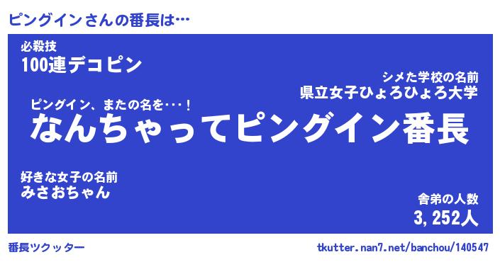| 欧米人風あだ名 | 『マイケルピングイン』 |