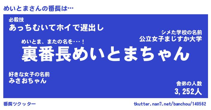 | 意味不明あだ名 | 『ペロリンめいとま』『永久保存めいとま』 |