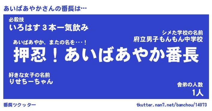 | 意味不明あだ名 | 『ペロリンあいばあやか』 |