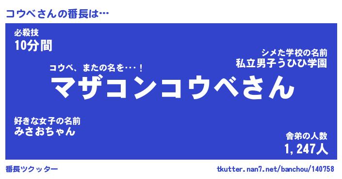 | ヒーロー風カッコイイあだ名 | 『スーパーコウベ』『ウルトラコウベマン』 |