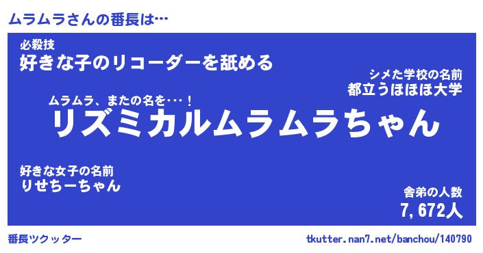| ファンタジー風あだ名 | 『ムラフェル』『エターナルムラムラー』 |