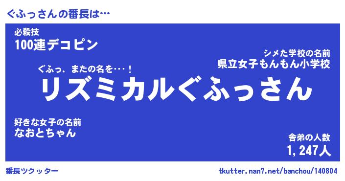 | ピコ太郎風あだ名 | 『グコ五郎』『ピグ四郎』『グフ史郎』 |