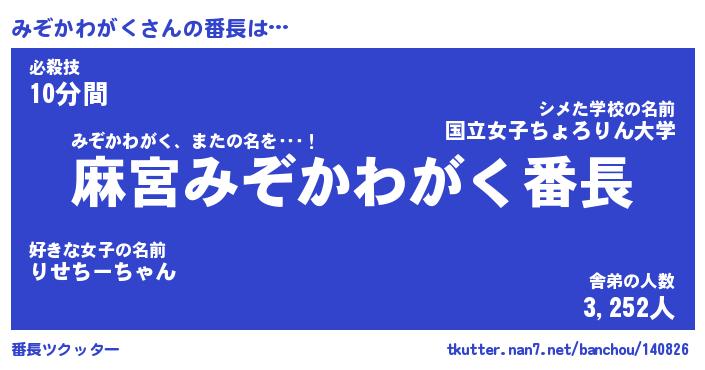 | ヒーロー風カッコイイあだ名 | 『スーパーミゾカワガク』『幻影騎士ミゾ』 |