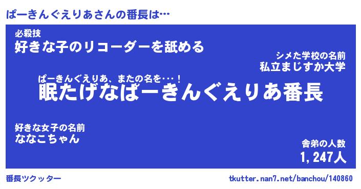 | 欧米人風あだ名 | 『マイケルぱーきんぐえりあ』 |