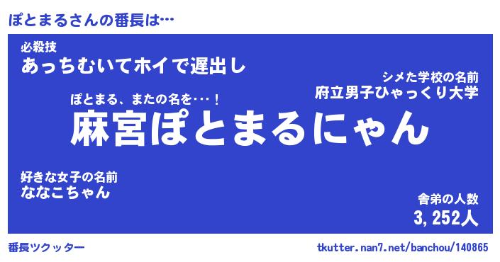| 意味不明あだ名 | 『ペロリンぽとまる』『永久保存ぽとまる』 |