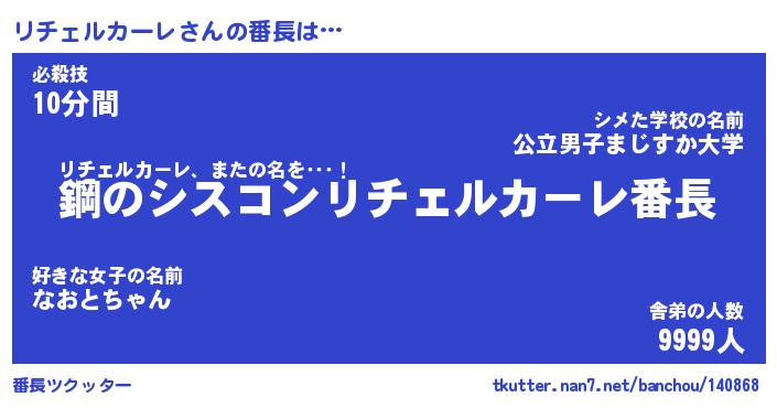 | ヘコむあだ名 | 『リチもー』『牛乳』『リチ太郎』 |