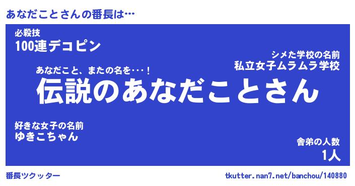 | ファンタジー風あだ名 | 『アナフェル』『エターナルアナダコトー』 |