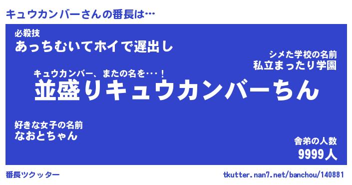 | ヒーロー風カッコイイあだ名 | 『スーパーキュウカンバー』 |