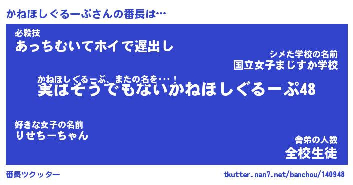 | 肩書あだ名 | 『かねほしぐるーぷ社長』 |