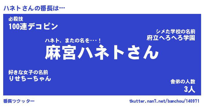 | ヒーロー風カッコイイあだ名 | 『スーパーハネト』『ウルトラハネトマン』 |