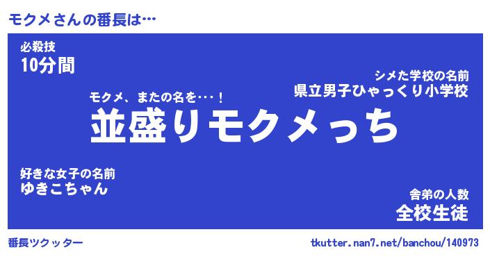 | 肩書あだ名 | 『モクメ社長』『モクメ総理大臣』 |