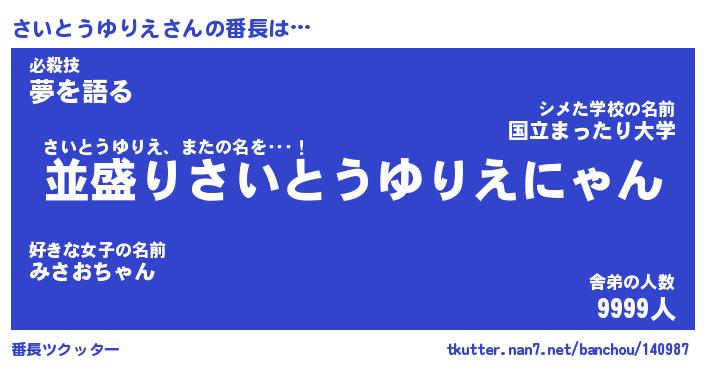 | ヒーロー風カッコイイあだ名 | 『スーパーサイトウユリエ』 |