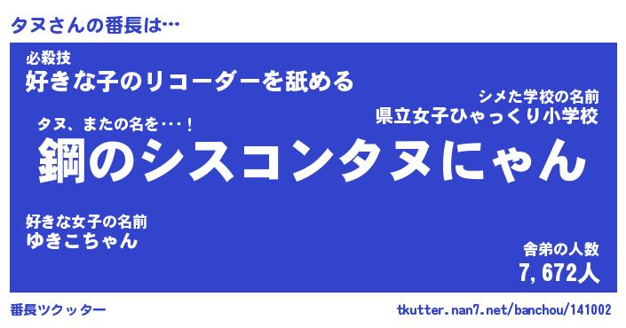 | 2回繰り返すあだ名 | 『タヌタヌ』『タタヌヌ』『ぬらぬら』 |