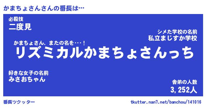 | ヒーロー風カッコイイあだ名 | 『スーパーカマチョサン』『幻影騎士カマ』 |