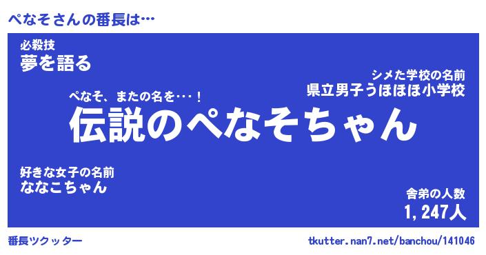 | 意味不明あだ名 | 『ペロリンぺなそ』『ぺなそフォーエバー』 |