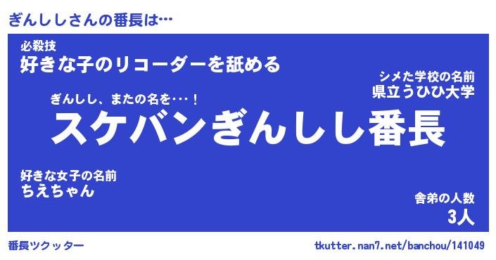 | 意味不明あだ名 | 『ペロリンぎんしし』『永久保存ぎんしし』 |