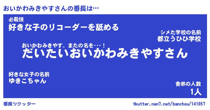 | 意味不明あだ名 | 『ペロリンおいかわみきやす』 |