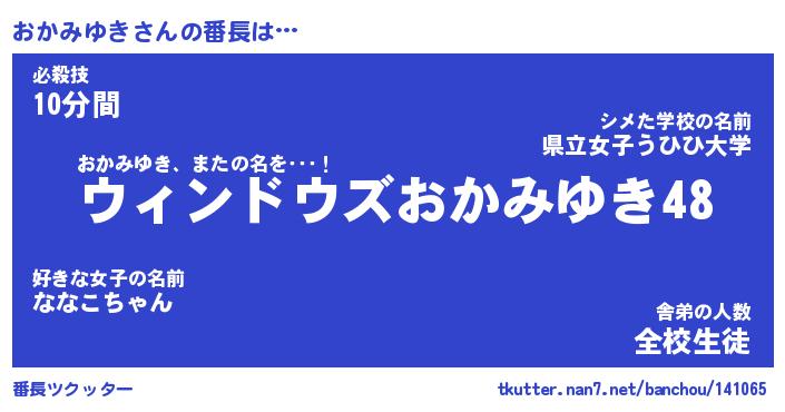 | 女子向けラノベタイトル風あだ名 | 『(仮)おかみゆきのやんごとなき事情』 |